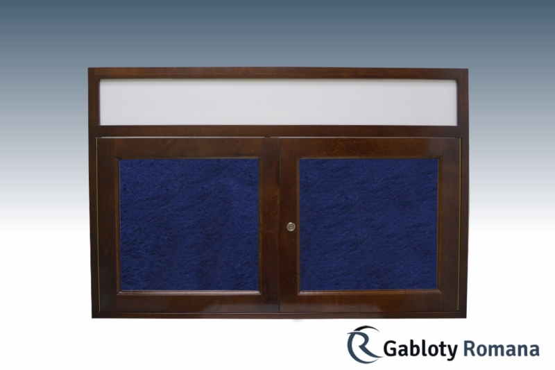 Wysoką jakość i trwałość gablot ogłoszeniowych, drewnianych zapewniamy używając do produkcji litego, sosnowego drewna. Górę gabloty stanowi płyta plex mleczna o wysokości 17 cm opatrzona logo bądź napisem w/g specyfikacji Klienta (w wariancie z oświetleniem logo jest podświetlone od tyłu). Głębokość gabloty drewnianej wynosi 7 cm. W standardzie nasze gabloty informacyjne, drewniane zabezpieczamy lakierem. Dodatkowo na życzenie klienta drewno może być bejcowane na kolor z listy znajdującej się poniżej. Do dwuskrzydłowych, gablot ogłoszeniowych stosujemy 4 mm szyby zwykłe. Wnętrze gabloty drewnianej, wewnętrznej stanowi biała magnetyczna płyta, malowana proszkowo. Zawartość gablot zabezpieczamy zamkami patentowymi. Do produkcji naszych gablot ogłoszeniowych używamy wyłącznie certyfikowanych części polskich, duńskich i niemieckich.