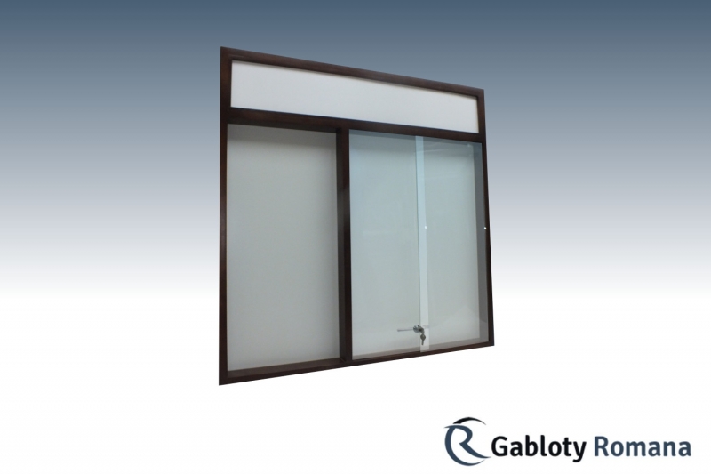 Drewniane gabloty ogłoszeniowe, dla zapewnienia wysokich standardów wykonujemy z litego drewna sosnowego i dla zabezpieczenia lakierujemy. Górę gabloty stanowi płyta plex mleczna o wysokości 17cm opatrzonym logo bądź napisem w/g specyfikacji Klienta ( w wariancie z oświetleniem logo jest podświetlona od tyłu). Na życzenie klienta rama może być bejcowana na kolor z listy kolorów dostępnych poniżej. Do produkcji gablot drewnianych, informacyjnych stosujemy system szyb o grubości 4mm. Gablota drewniana posiada w standardzie zamek patentowy by zabezpieczyć zawartość. Wnętrze gabloty drewnianej, stanowi biała, magnetyczna, sucho ścieralna płyta malowana dwustronnie proszkowo na biało.