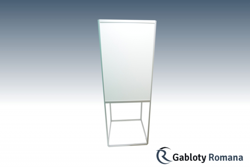 Przedstawiam Państwu wysokiej jakości tablice czterostronną, która jest przeznaczona do wewnątrz. Tablica może być dowolnych rozmiarów. Wykonana jest z trwałej, białej płyty magnetycznej. Informacje można powiesić na tablicy za pomocą magnesów. Tablica pomalowana proszkowo jest osadzona w wysokiej jakości profilach aluminiowych anodowanych na kolor srebrny. Profile produkuje Grupa Kęty. Cała konstrukcja jest zespolona bezpiecznymi głowicami z tworzywa sztucznego. Cała aluminiowa konstrukcja jest osadzona na słupkach aluminiowych, które są ze sobą połączone. Tablice można umieścić w dowolnym miejscu.