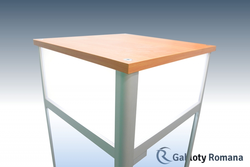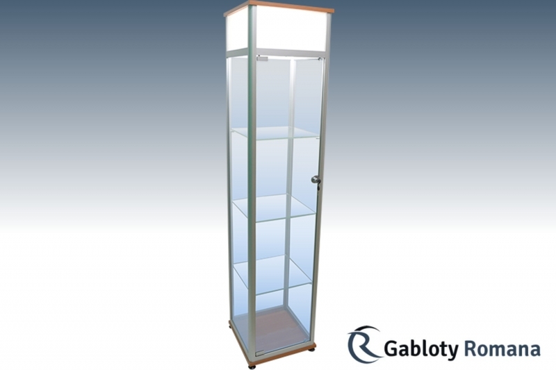Wysokiej jakości witryna stojąca przeznaczona jest do postawienia i eksponowanie towaru w sklepie. Wykonana jest z najwyższej jakości materiałów pochodzenia polskiego, niemieckiego i duńskiego. Wszystkie nasze witryny wykonujemy z należytą starannością. Witryna wewnętrzna posiada jedno skrzydło otwierane na bok. Można je bez problemu zamknąć za pomocą zamka patentowego. Wszystkie ściany boczne stanowi bardzo wytrzymałe szkło hartowane o grubości 4mm. Szyby hartowane, bezpieczne są umieszczone w certyfikowanych profilach wyprodukowanych przez Grupę Kety. Profile w witrynie łączą się ze sobą za pomocą bezpiecznych głowic. Głowice półokrągłe wykonane są z tworzywa sztucznego. Takie połączenie jest bezpieczne i trwałe. W środku witryny sklepowej są umieszczone szklane półki odporne na obciążenie. Podstawy witryny stojącej, szklanej są wykonane z pięknej płyty meblowej w kolorze wybranym przez klienta. W górnej części jest umieszczony 17cm fryz wykonany z płyty plex. Jest to miejsce specjalne przeznaczone na logo, napis lub herb. Witryna tego rodzaju może zostać oświetlona w środku gwarantując tym samym dobrą widoczność w nocy.